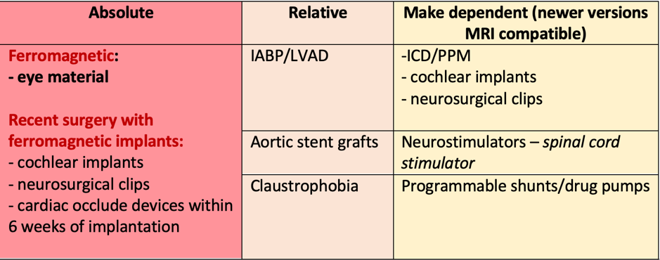 4. Contraindications to MRI