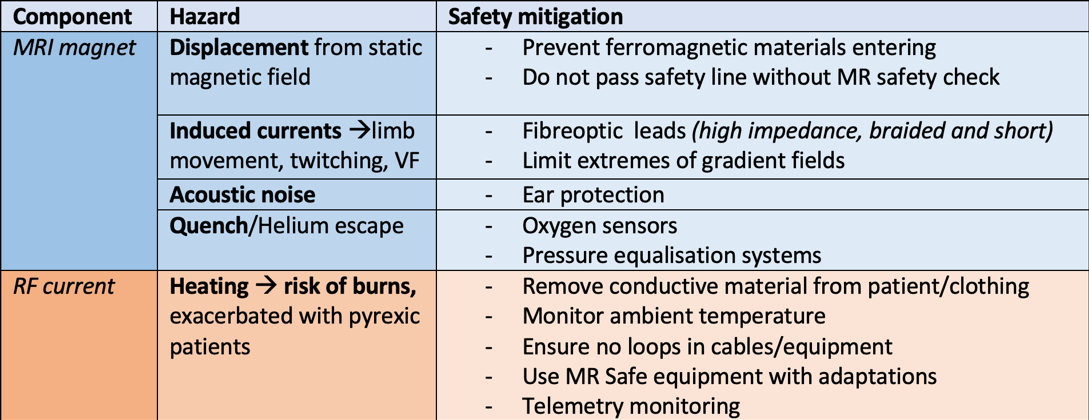 What are the hazards of MRI and how do we mitigate these?