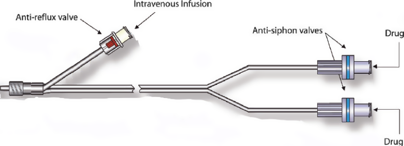 c. Anti-reflux valve on any fluid administration line